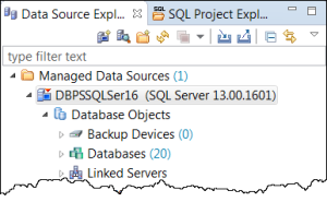 A data source registered as a profile repository appears in the Profiling Repositories node of the Data Source Explorer and also has a Profile Repository child node in under its entry in the Managed Data Sources folder. Profiling sessions are saved in the repository under a name that is comprised of the date, time, and duration of the profiling session.