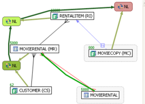 Green numbers at top left of table represent the total number of rows in that table. In the above the MOVIERENTAL (MR) table has 5000 rows.