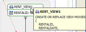 Hover over the name of an object to view the object SQL as shown in the diagram below.