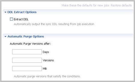 The Options tab in the Configuration Archive Job editor contains options for handling the DDL and purging older archives.