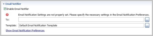 - Click Enable Email Notifier to enable email notification. When you select this check box, a list of notification parameters appears.