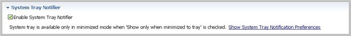 - Click Show System Tray Notifications to specify the appearance and behavior of the specific pop-up windows.
