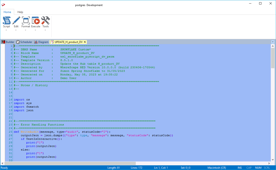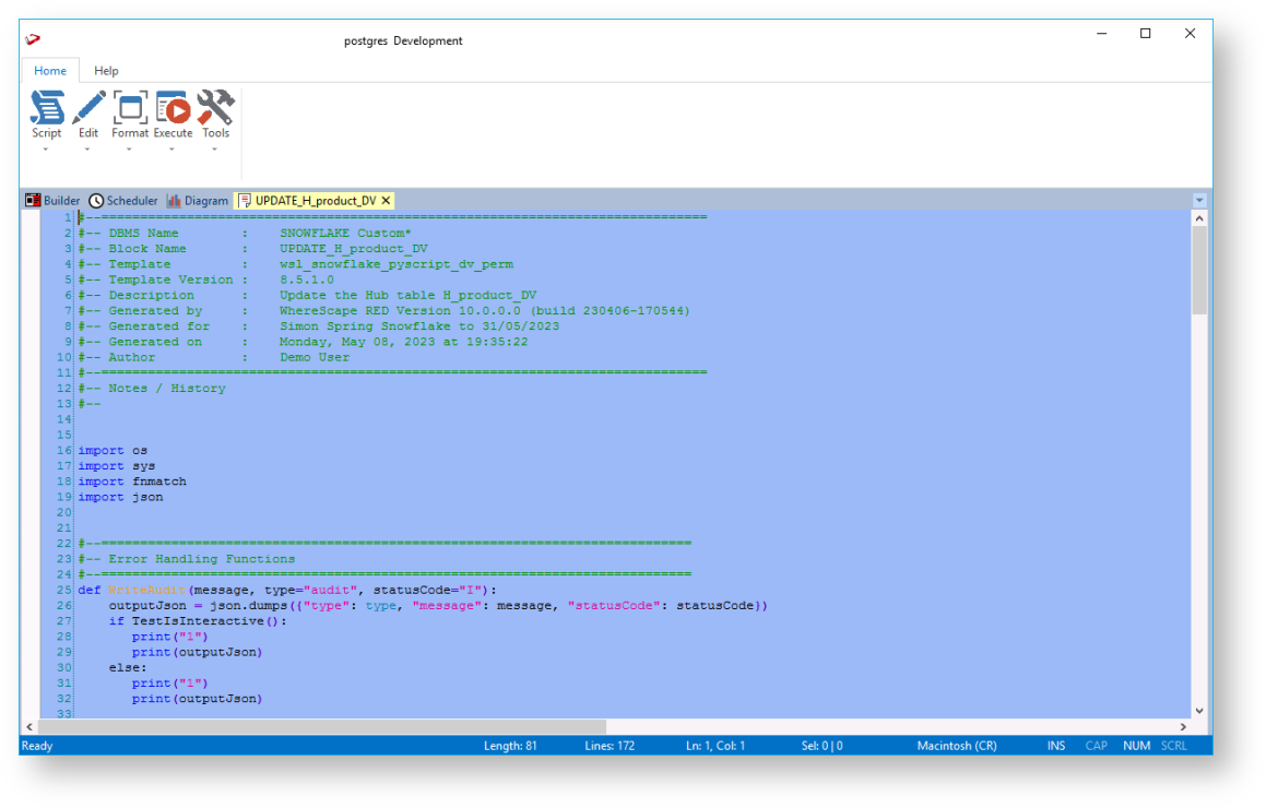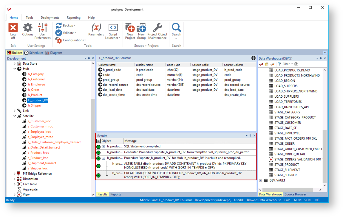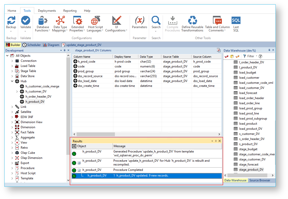 Follow the same steps described above to create and execute the update procedures for the Link and Satellite tables, via a template to populate the tables.