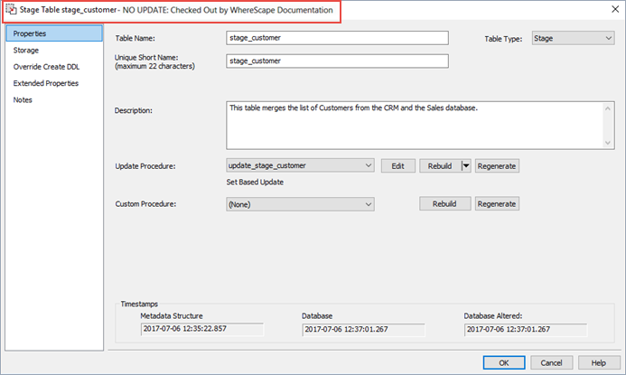 Checked-out objects and their associated procedures and scripts cannot be modified, updated, or deleted by other users. If a different user tries to access the Properties or Procedure screens for those objects, the fields will not be available and headed NO UPDATE: Checked Out by (user name).