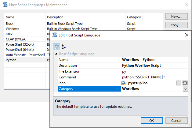 • A new Host Script Language category has been added for Workflow scripts: