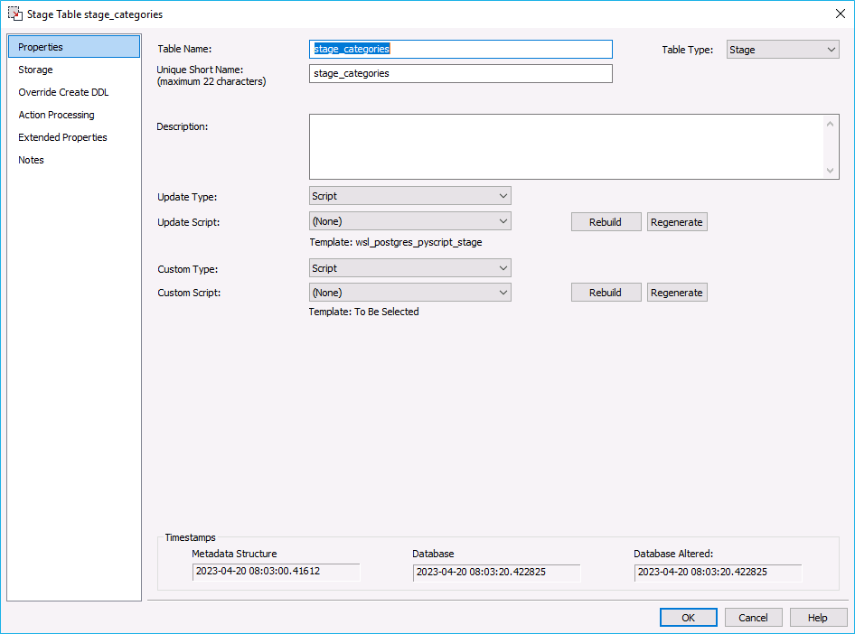 Update Type | This field is only displayed if the table object is created in a custom database target, an additional processing option is available—script-based processing. Refer to Script Templates for Custom Database Table Objects for details. Enables you to select between Procedure or Script update type. Selecting Script displays the Update Script drop-down field which enables you to select a script to use from the list of available script templates.| |