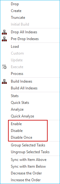 You can change the action on a task by right-clicking the task in the right pane. The menu options are shown below.