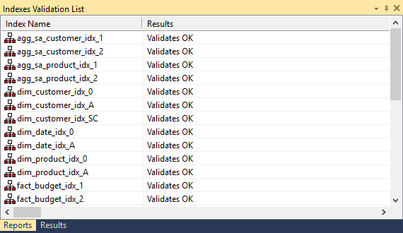 The menu option Validate > Validate Index Status checks the metadata definition of an index against that in use in the database. It checks to ensure that the index exists and that the index type and columns are the same.
