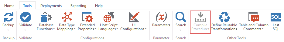 Procedures can be invalidated as a result of changes to underlying tables, or child procedures. A procedure can be recompiled through the procedure editor or via the menu option Tools > Compile Procedures: