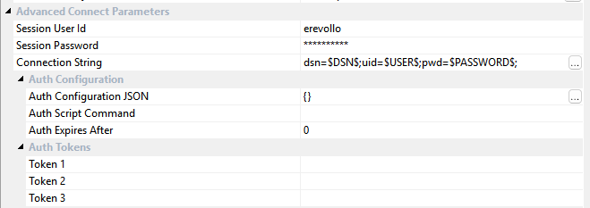 When saving a connection from the connection properties screen, the connection string is stored in the metadata and accepts the following RED tokens for automatic replacement at runtime to avoid storing any credentials in the metadata.