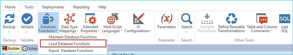 To load a database function set, select Tools > Database Functions > Load Database Functions.