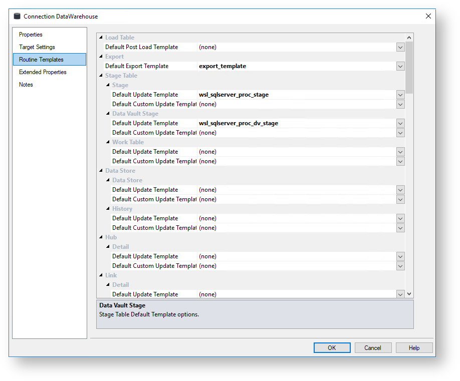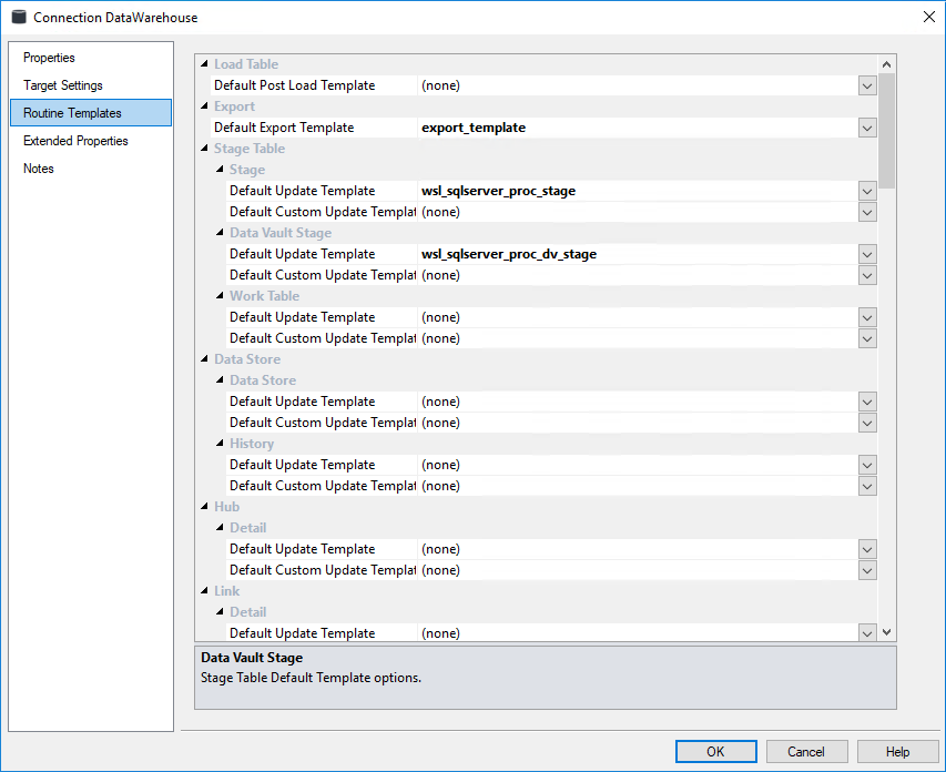 - The Routine Template defaults can also be set using REDCLI, for example: RedCli>connection set-default-template --con-name "MyTargetConnection" --obj-type "Stage" --obj-sub-type "DataVaultStage" --op-type "UpdateRoutine" --tem-name "wsl_sqlserver_stage_dv"