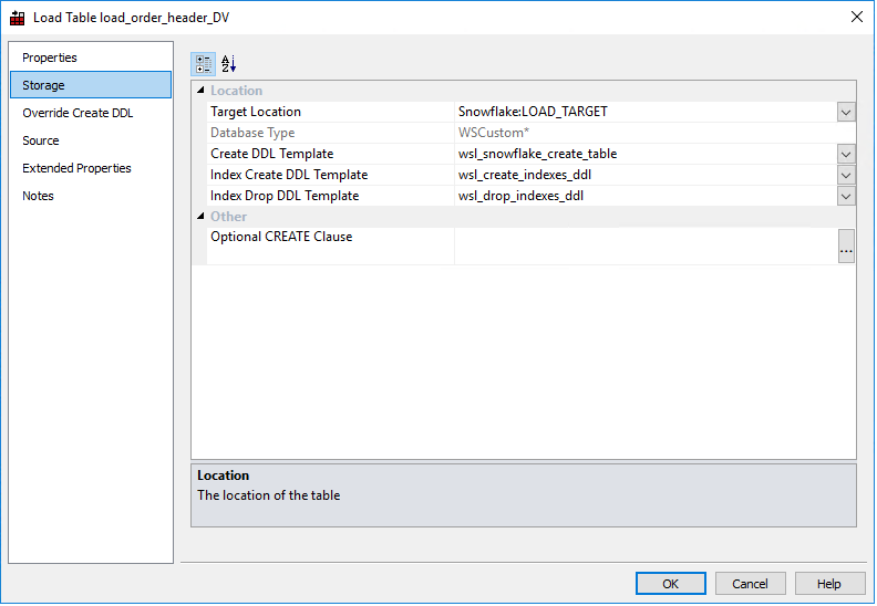 Optional. Specify the template to use for generating DDL for this table. Set to None to use default DDL.