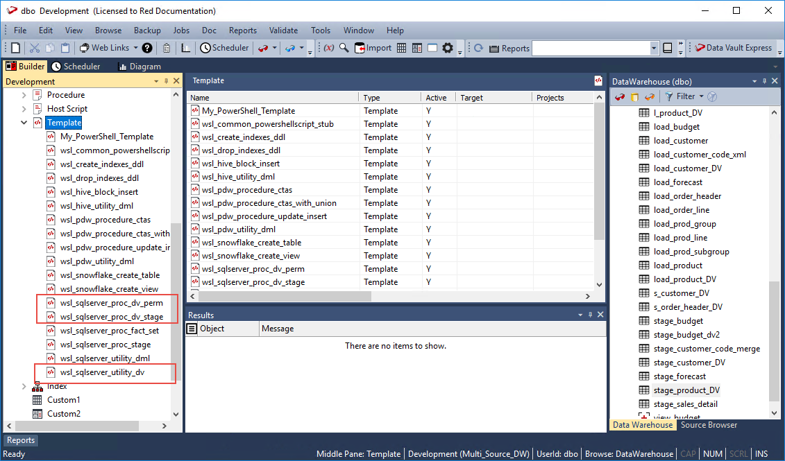 • wsl_sqlserver_proc_dv_perm – this template creates an SQL Server procedure for updating WhereScape RED Data Vault objects (Hub, Link and Satellite tables).