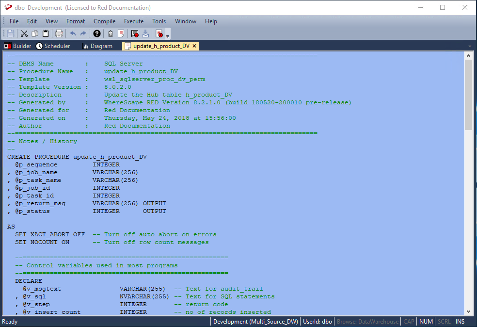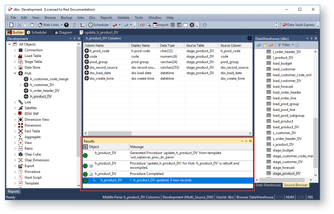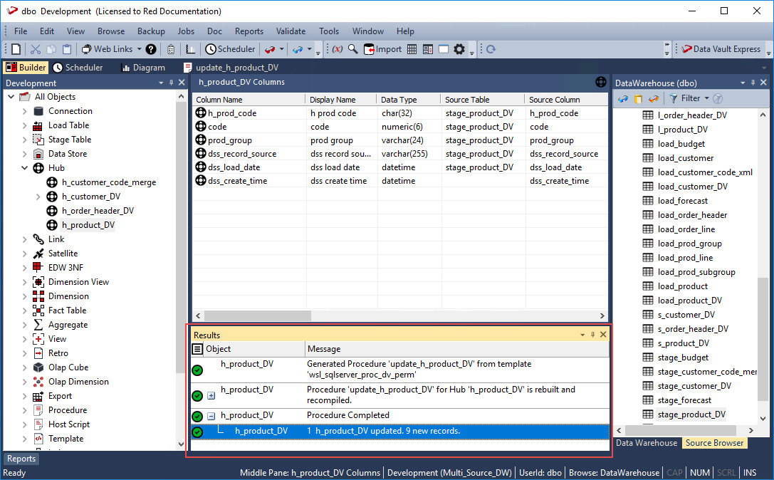 Follow the same steps described above to create and execute the update procedures for the Link and Satellite tables, via a template to populate the tables.