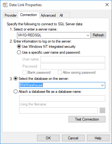 Connection Provider/Driver | Name of the Connection Provider/Driver to use to connect to the data warehouse database when it is used as the data source for OLAP cubes. Set to SQLOLEDB for SQL Server, TDOLEDB for Teradata. |