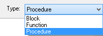 The Type drop-down list provides the selection of Block, Function or Procedure: