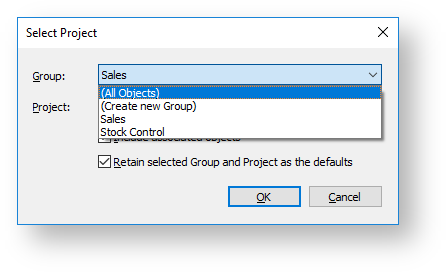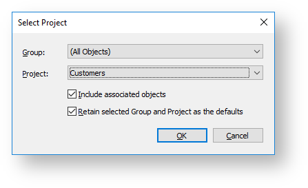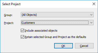 If the Retain selected Group and Project as the defaults check box is selected, the selected Group and Project are retained as the defaults. This option is selected by default.