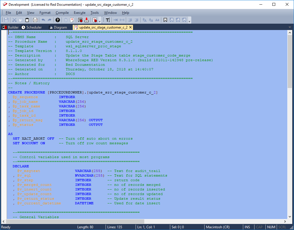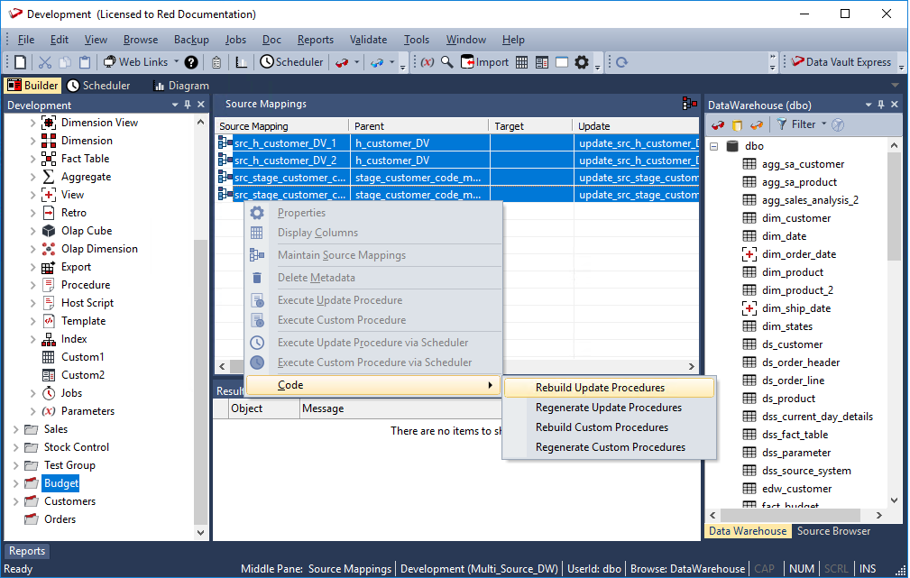 Generating update and custom procedures for Source Mapping objects is completed using the same workflow as all objects in RED that support template based procedure/script generation.