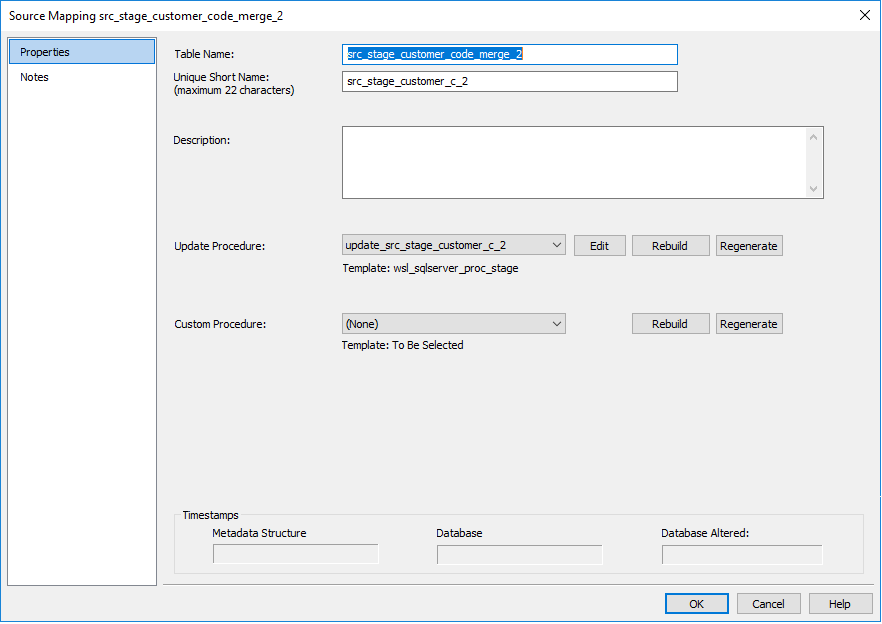 - Click the Rebuild button beside the Update Procedure drop-down in the Properties screen of the Source Mapping object, to launch the procedure generation Wizard.