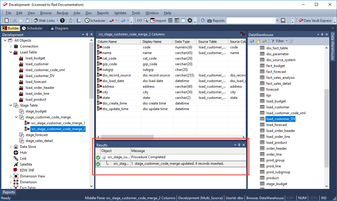 - Right-click the source table from the left pane and select Execute Update Procedure from the context menu to run the procedure. The Results pane displays the number of records created.