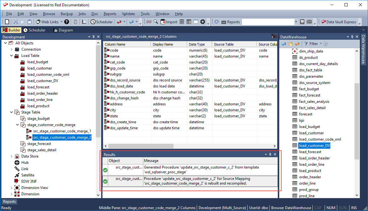 Once the update procedure code has been generated for the source mapping objects, RED enables you to perform bulk code regeneration in source mapping objects from multiple tables.
