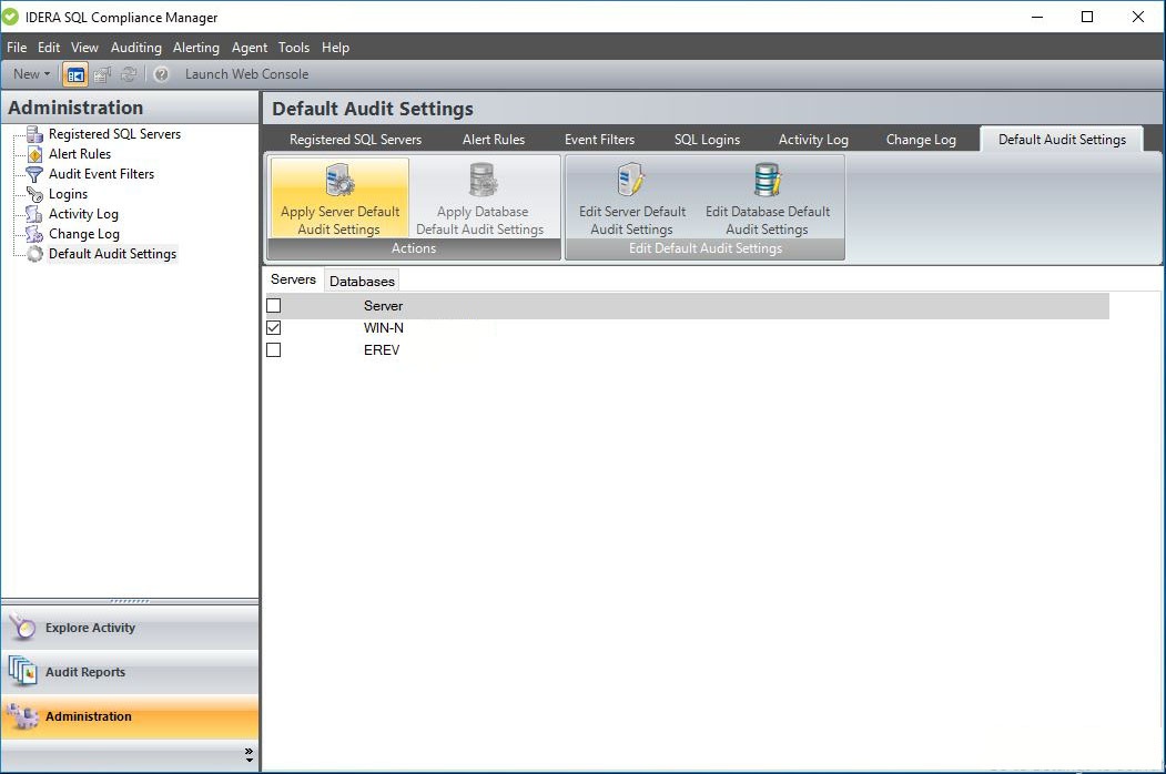 - Under the Servers tab, select the SQL Server Instances to which you want to apply the Default Server settings and click the Apply Server Default Audit Settings option.