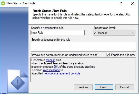 If you want to change a setting now, use the rule details pane. You can also change alert rule settings later using the Edit Status Alert Rule wizard.