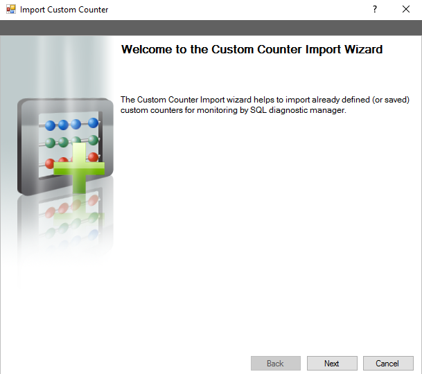 Custom counters are Windows Operating System or SQL Server metrics that are not monitored, by default, by SQL Diagnostic Manager. You can import already created custom counters from the IDERA community site through the Custom Counter Import Wizard. Once added to the SQL Diagnostic Manager interface, you can monitor the results, view historical trending of the metric, configure alerts and receive notifications on them, and generate reports based on collected data.