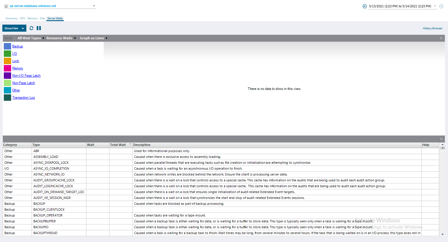 The Server Waits view allows you to see all of the waits affecting Azure SQL server performance.