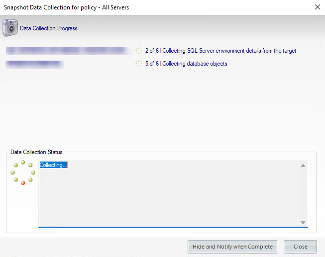 • To take a snapshot of all your registered servers at once, from the Servers in Policy view  right-click All Servers and select Take snapshot .
