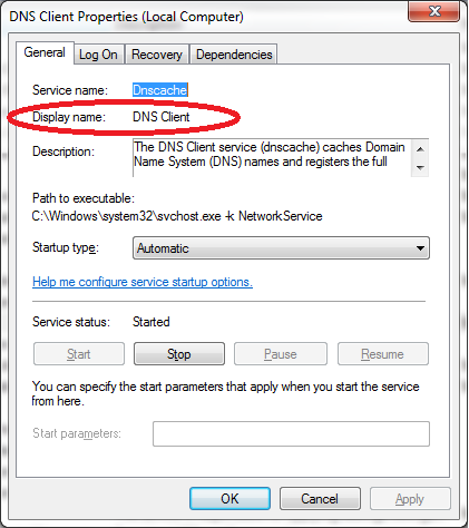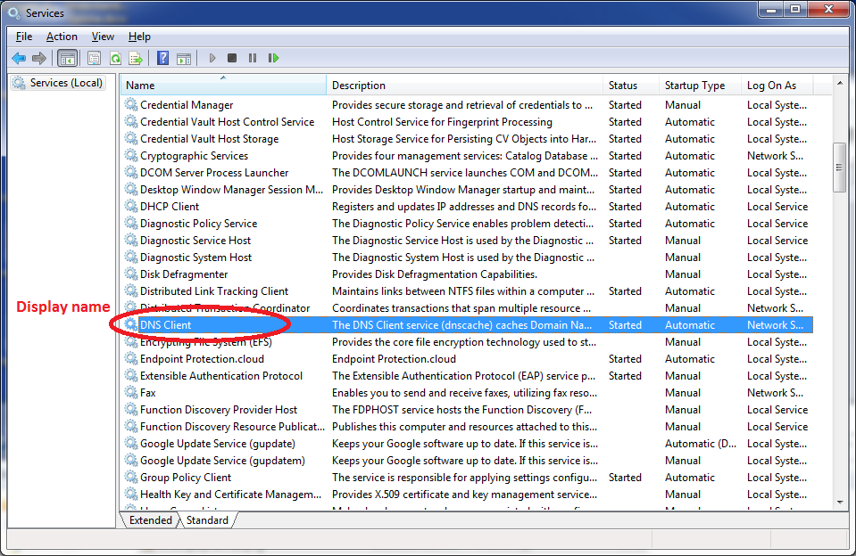 Note that Microsoft has both a Display Name and a Service Name. We want the Display Name (see the images that follow).