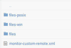 So in the case of the Custom Remote Monitor's 'files' folder, you'll notice it contains some sub folders (ie. plugins/scripts/monitor-custom-remote ) which eventually contain a single rcs.php file.