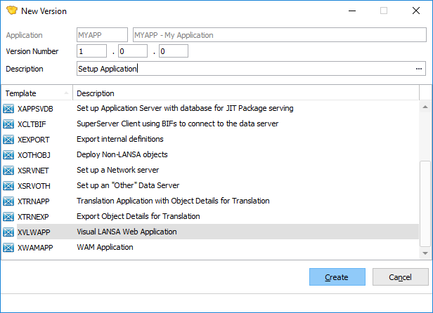 The initial Version in an Application is created when the Application is created. After confirming the Application details the New Version dialog is presented. |