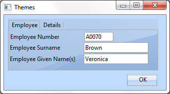 When the application is started, it shows the employee that was being displayed when the application was last closed down. The values are retrieved using this code: