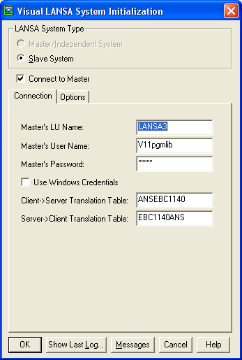 If your 4.3.2 LANSA System Type is a Slave System, then specify the IBM i Master Repository to connect to to retrieve the LANSA System Definitions.
