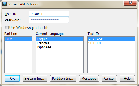 The Visual LANSA Logon is displayed when the Visual LANSA Development Environment is started.