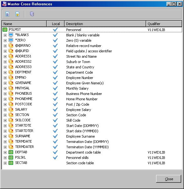 On the resulting Cross References dialog, the Master only toolbar option can be used to selected all cross reference objects which exist on the Master Repository but do not exist in the local Visual LANSA Repository.