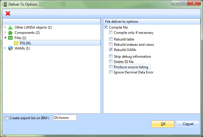 When delivering to an IBM i a checkbox is available to indicate if an export list of the delivered objects should be automatically created on IBM i during the deliver to processing.