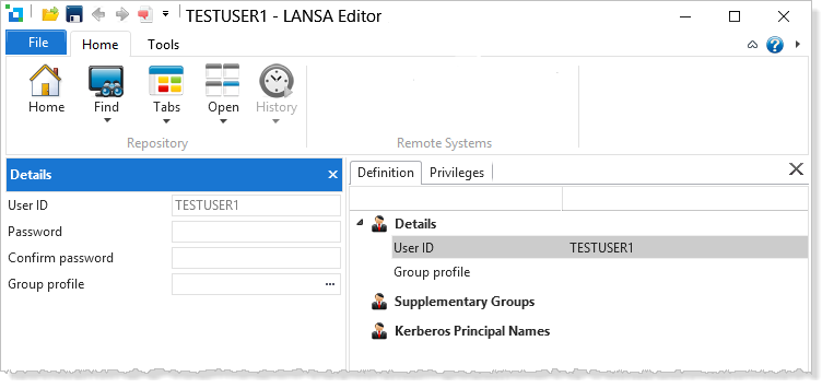 If you are using a LANSA for i Master System, user profiles will be created using the IBM i Master System and must be refreshed in the Visual LANSA System. Refer to Maintaining Users and Tasks on Slave Systems. The IBM i maintained profiles are displayed as read only in Visual LANSA.