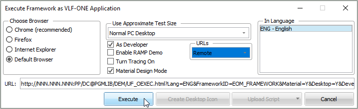 Now click Execute on the Execute Framework as a VLF-ONE Application dialog to start your Framework.