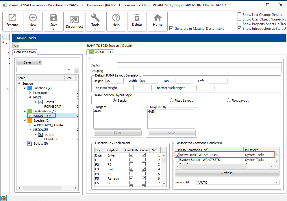 Click on the WRKACTJOB destination in the tree.