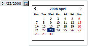 An example of the weblet is shown below. In this example, the (optional) calendar prompt button has been clicked and the calendar prompt window is visible.