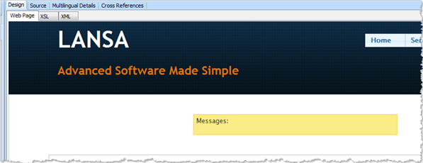In this example, the appearance and functionality of the web page generated for webroutine kwam1001 is modified by dropping a field onto the design, including a reference to the push button weblet and customizing the properties as required.