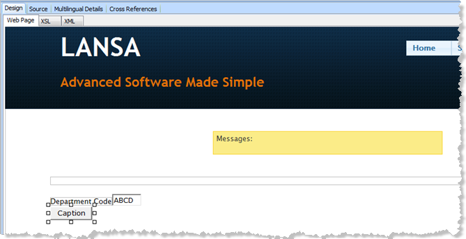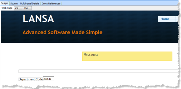 The goal in this example is to construct a simple search page to allow to a department code to be entered and then a search for department records initiated.