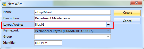 A WAM-specific layout weblet is automatically generated for a WAM the first time it is built or compiled unless one already exists.