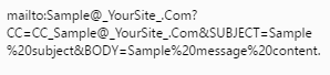 mailto 属性が使用されると、ブラウザによりデフォルトの電子メール・プログラムが開かれ、アドレスやその他リンクに指定されたパラメータが設定されます。