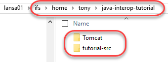 この ZIP ファイルを IBM i の IFS フォルダに展開します (例: /home/tony/java-interop-tutorial)。