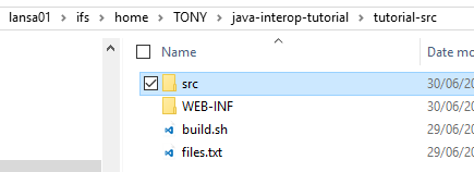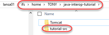 ZIP パッケージを抽出したフォルダに進みます。ソース Java のファイルは、フォルダ tutorial-src 内にあります。