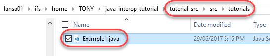 それでは、src フォルダに進み、次に tutorials へ進むと、Java ソースファイル Example1.java があるはずです。